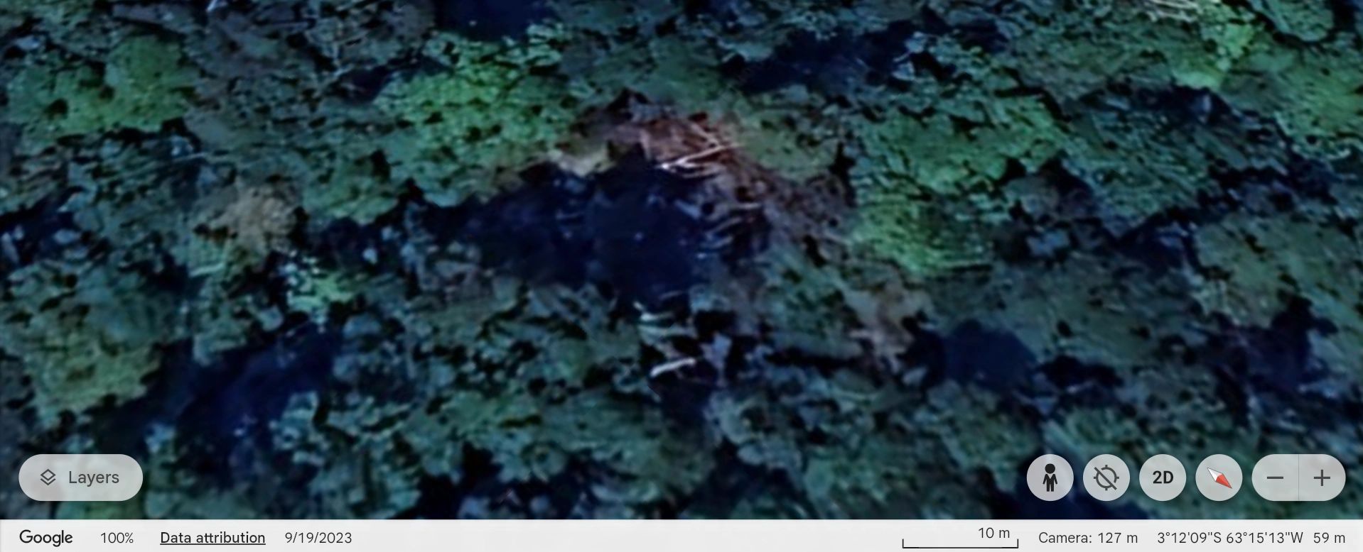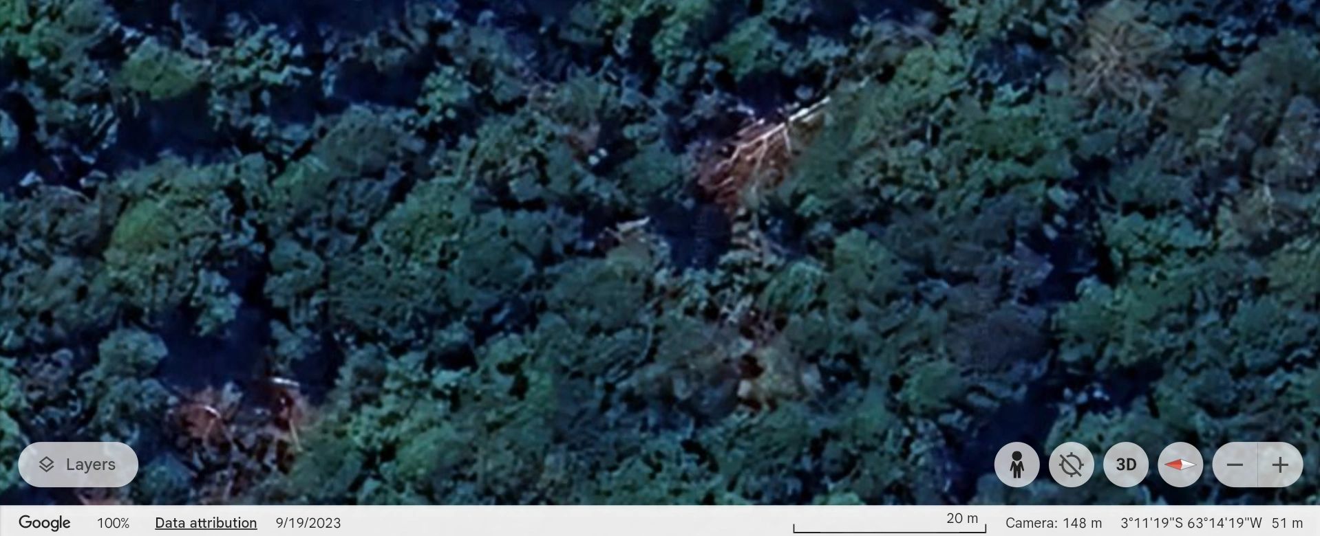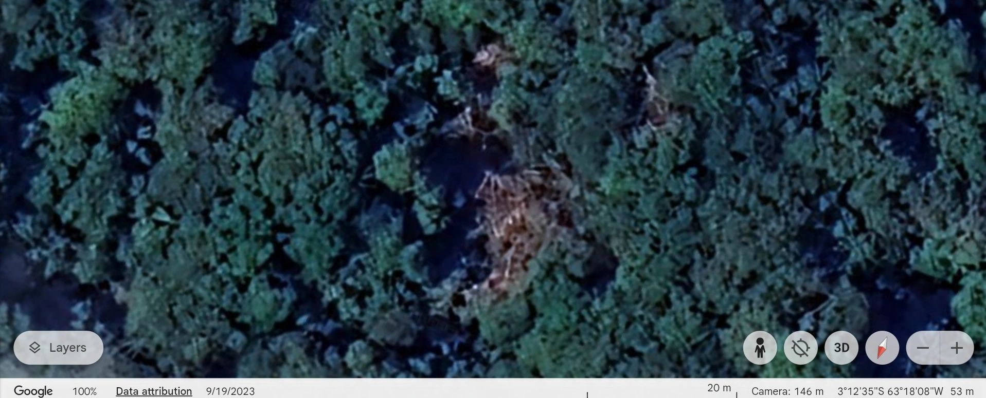 In the gallery below, you’ll find a set of unreviewed satellite images from deep in the Amazon. These images were captured during the historic 2023 drought, when unusually clear satellite conditions exposed features typically hidden under thick rainforest canopy. These are real leads—raw, unexplored, and waiting for your interpretation.
