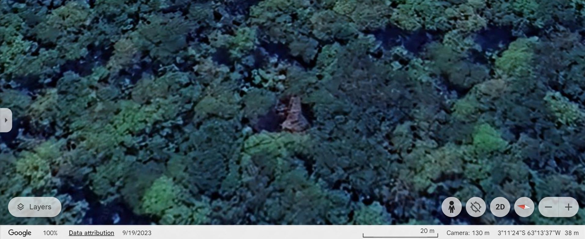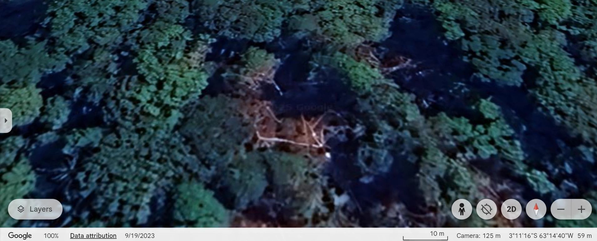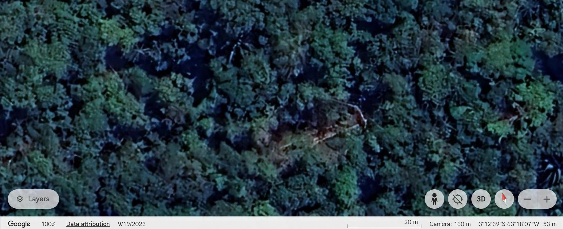 In the gallery below, you’ll find a set of unreviewed satellite images from deep in the Amazon. These images were captured during the historic 2023 drought, when unusually clear satellite conditions exposed features typically hidden under thick rainforest canopy. These are real leads—raw, unexplored, and waiting for your interpretation.